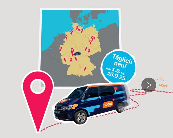 Vom 1. bis 16. September 2025 besucht das logo!-Team täglich eine neue Station in Deutschland. Das Besondere: Kinder konnten sich mit eigenen Projekten bewerben und logo! in ihre Stadt holen. Über 400 gemeinnützige Projektideen gingen ein – vom selbstgebauten Kinderkino bis zum Kindergemeinderat. Die ausgewählten Projekte werden live vor Ort vorgestellt und zeigen, wie engagiert sich junge Menschen für ihre Umwelt einsetzen.